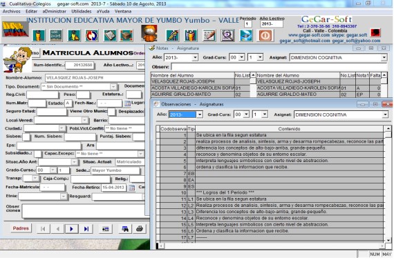 Programa para el control notas y sus respectivos logros e indicadores de logro por asignatura y por alumno, es una poderosa herramienta informática para el registro académico del plantel, se pueden operar de forma fácil en ambiente gráfico. El programa provee de herramientas, estadísticas y gráficas para tomar decisiones encaminadas al mejoramiento del nivel educativo.